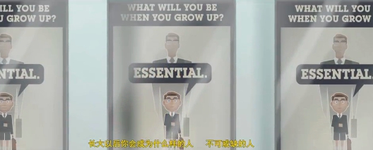 電影開頭,從一場決定人生的面試開始。女孩母親和女孩反覆背誦著詞彙,包含理性、才能等等面試語句。她們身後掛著一張宣傳海報:「你將會成為怎麼樣的大人」,「Essential」大大的字印在中間。「Essential」指的是必要的,有用的。
